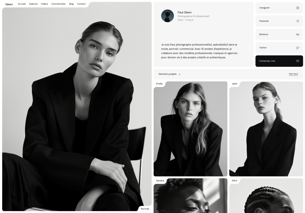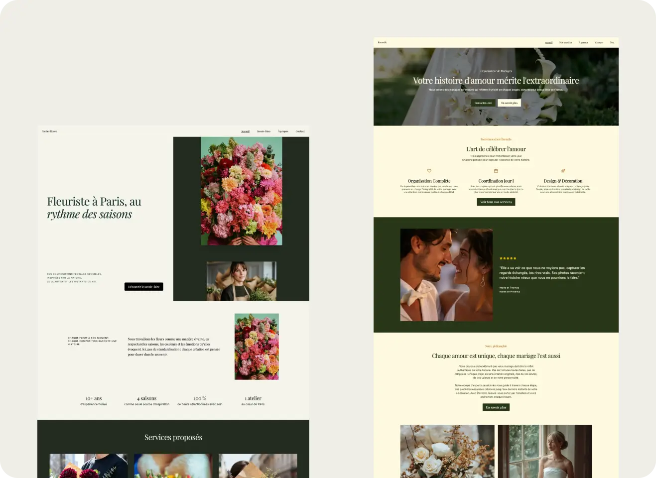 Pas le temps de tout construire bloc par bloc ? Choisis un modèle pensé pour ton métier, personnalise-le en quelques clics, et publie. Ton site est en ligne en moins de 5 minutes.