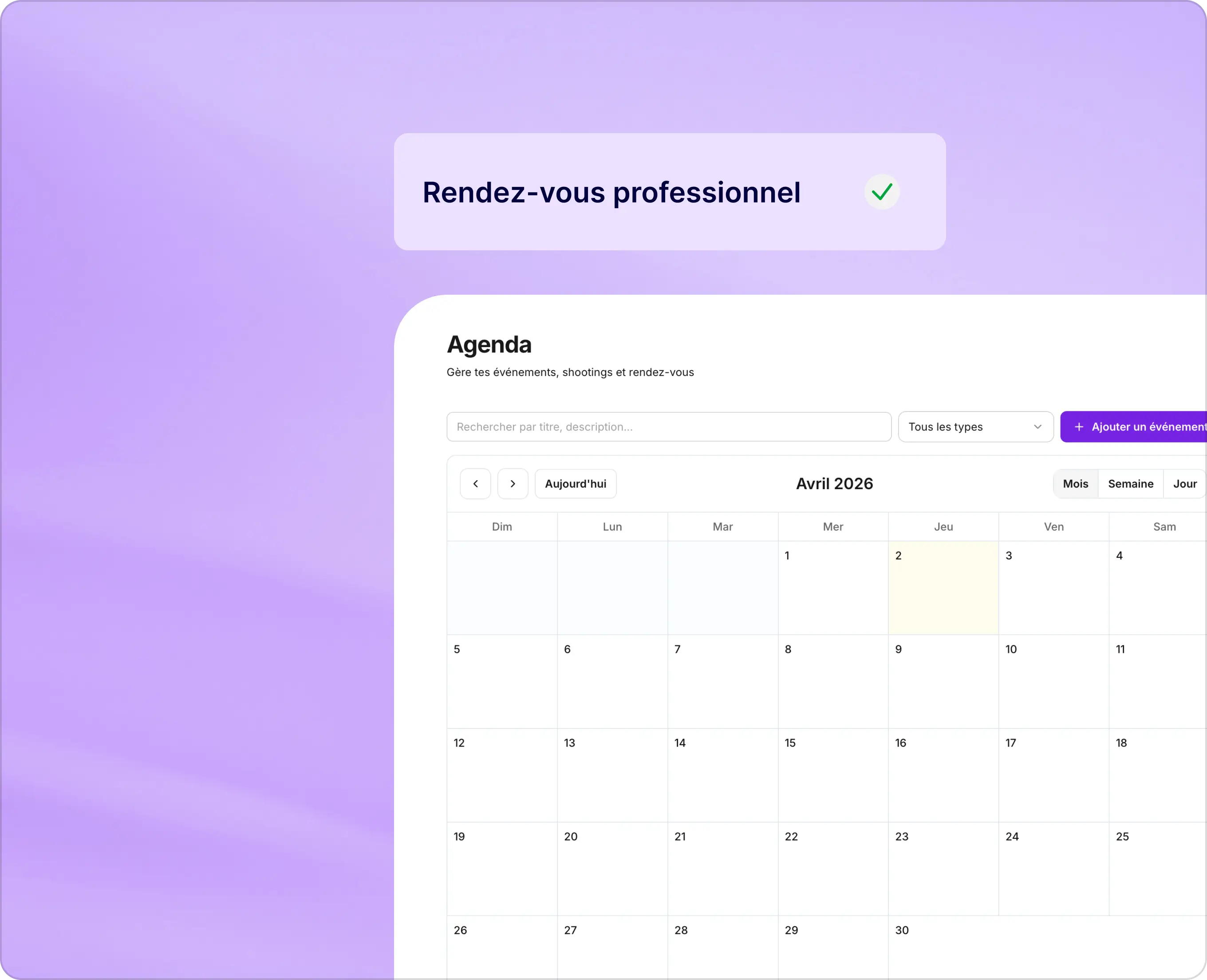 Affiche tes disponibilités directement sur ton portfolio. Les castings et agences savent quand te contacter — sans allers-retours inutiles.
